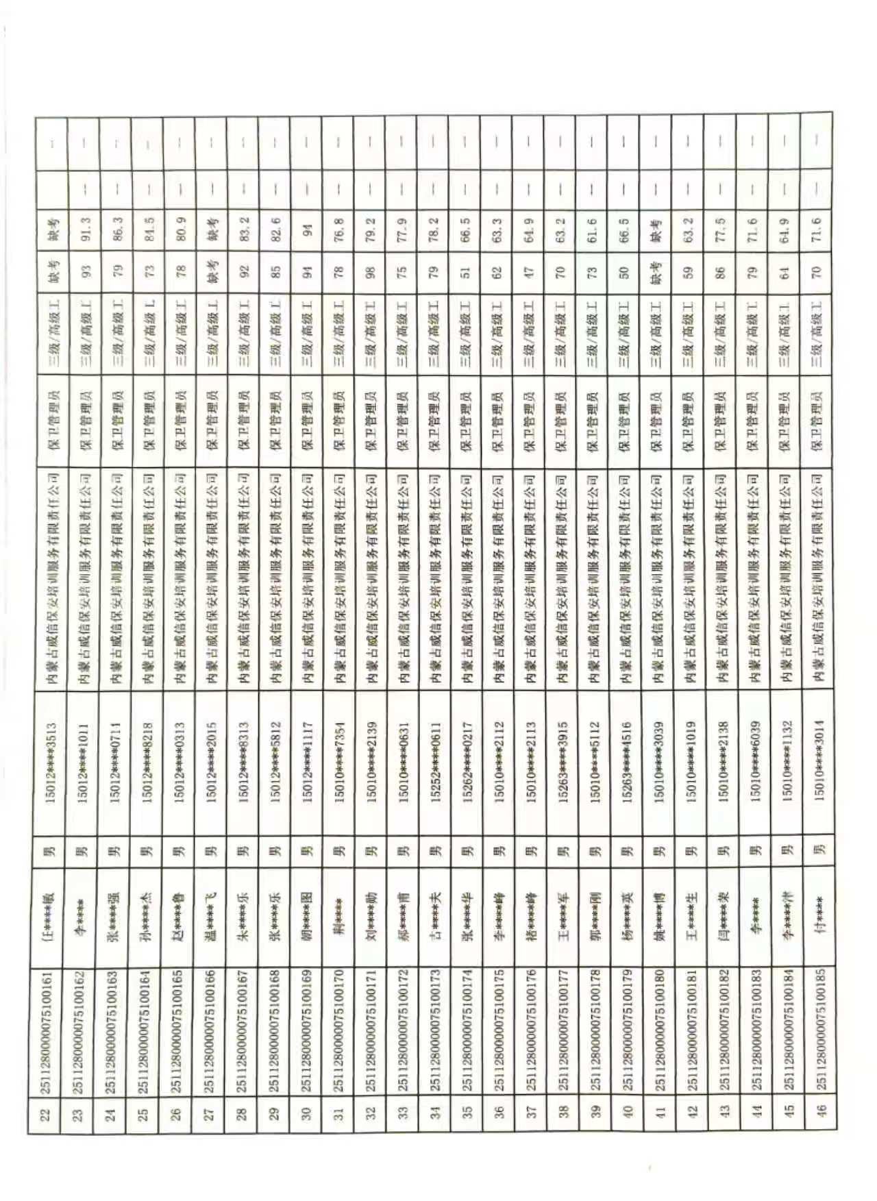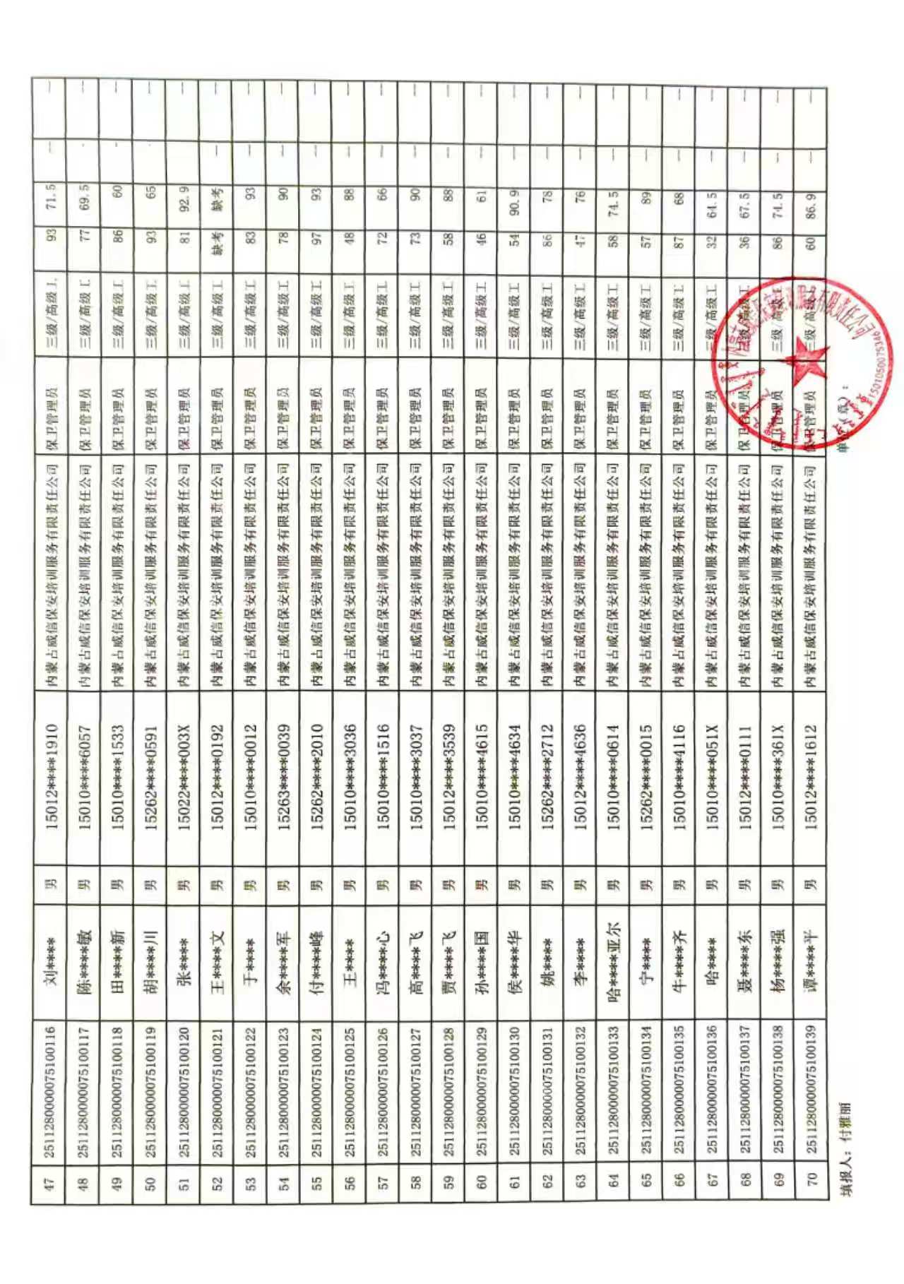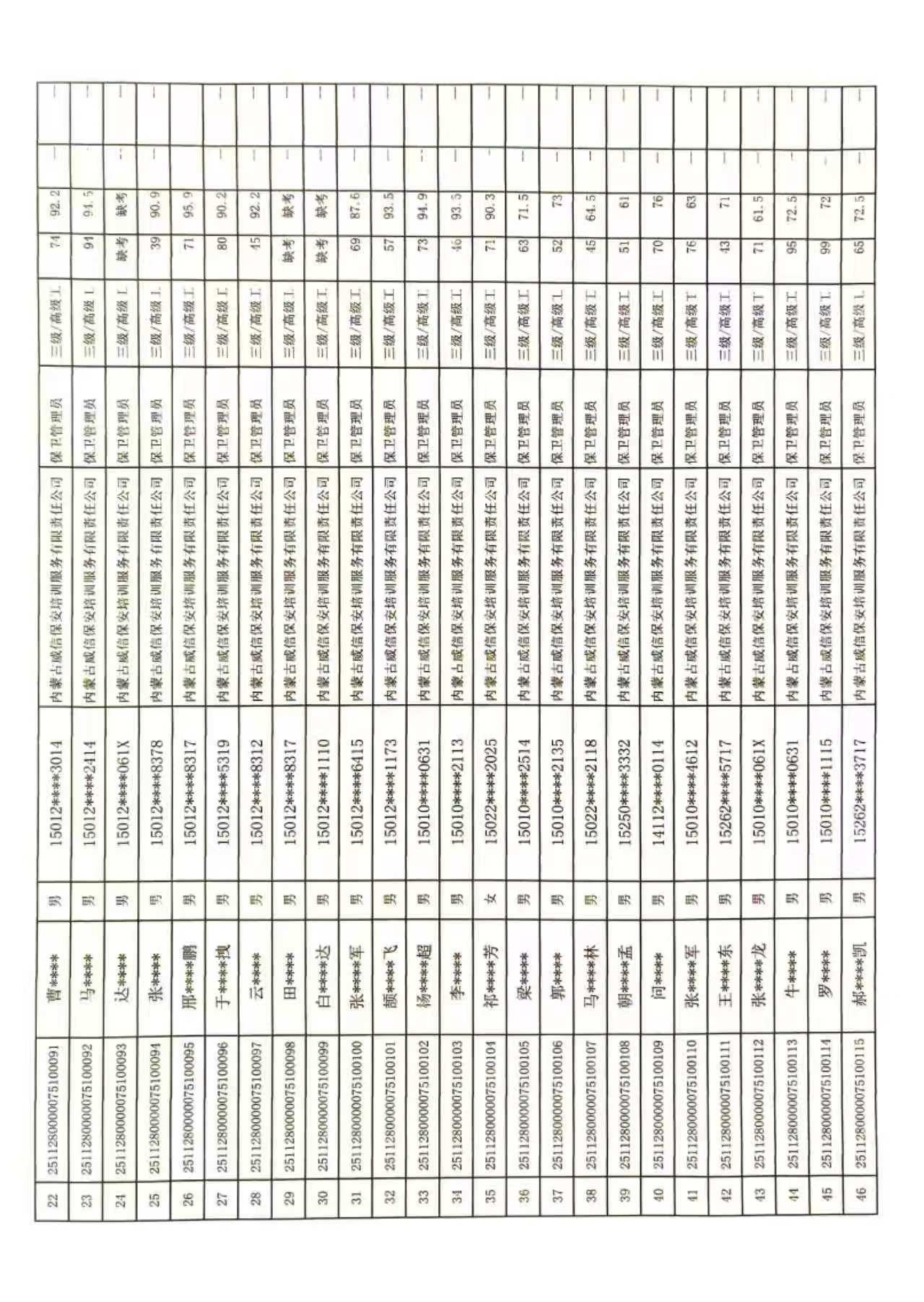 内蒙古威信保安培训服务有限责任公司2025年度12月6-7日保卫管理员职业技能等级认定成绩公示